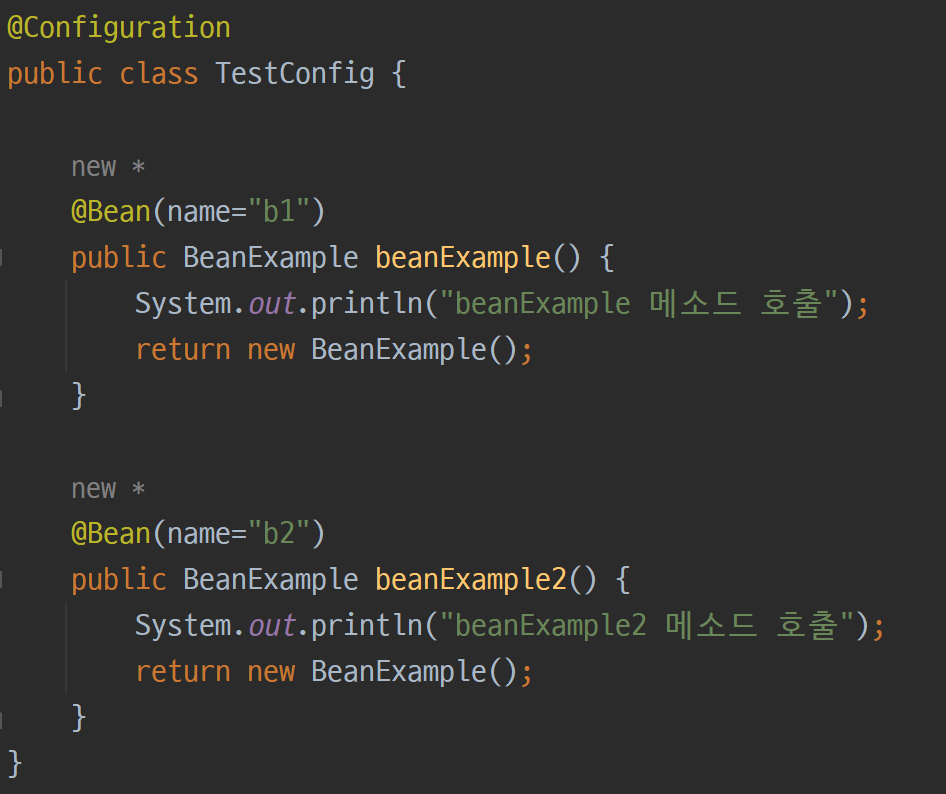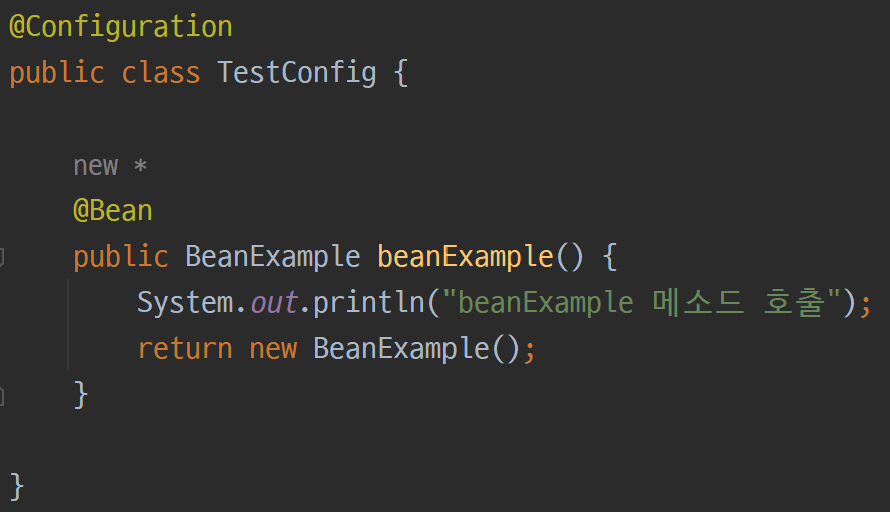 그리고 beanExample 메소드는 새로운 BeanExample 객체를 반환한다. ( return new BeanExample(); )