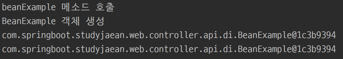 분명 beanExample 메소드를 2번 호출 했는데 호출은 1번만 된 것을 확인 할 수 있다.