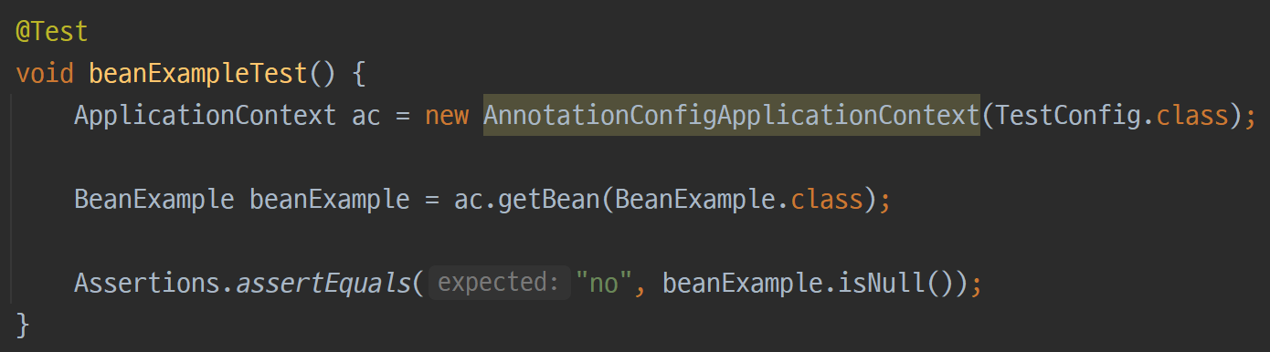 해당 테스트는 Bean으로 등록된 객체를 어떻게 꺼내오는지에 대해 알아보기 위함이다.