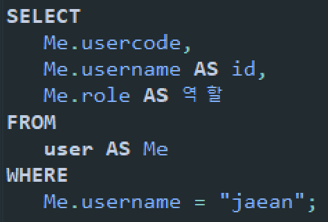 해당 쿼리에서 user 테이블의 이름을 Me로 바꾸었다.