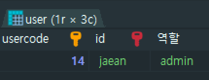 현재 role 컬럼에는 admin과 user라는 값만 존재하기 때문이다.
