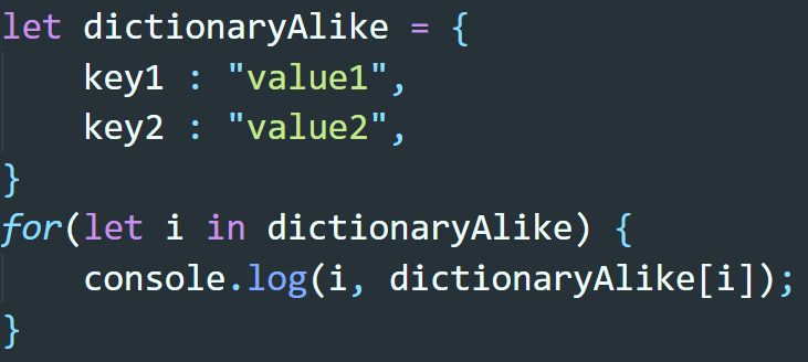 for in을 사용해 dictionaryAlike를 순회하면 i는 key를 가르키게 된다.