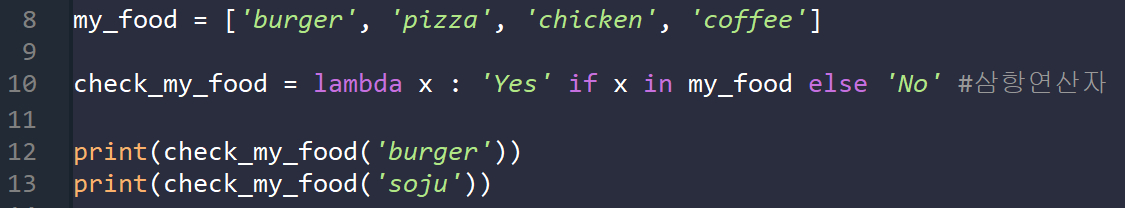해당 예제에서 주석처리된 함수와 lambda함수는 같다고 생각해도 무방하다.