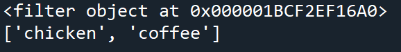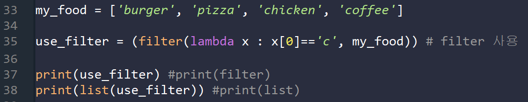 x[0]=='c'에 의해 반환된 원소만 반환된 filter 객체에 존재한다.