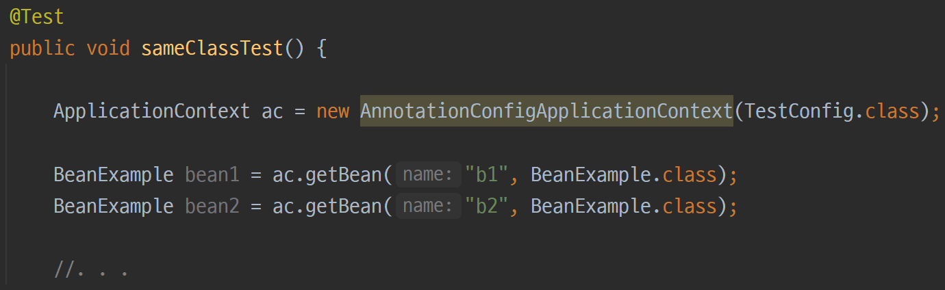 해당 테스트는 Bean으로 등록된 객체를 어떻게 꺼내오는지에 대해 알아보기 위함이다.